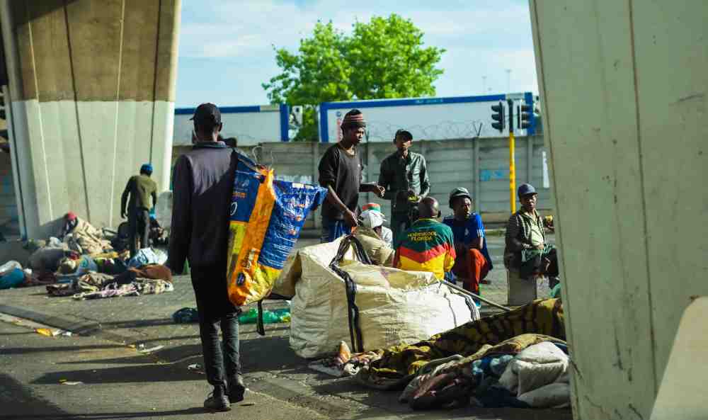 Johannesburg , South Africa – December 20 , 2017:waste pickers, due to social inequalities, they make extra money by picking up recyclables on the streets of Johannesburg, from metal to cardboard
